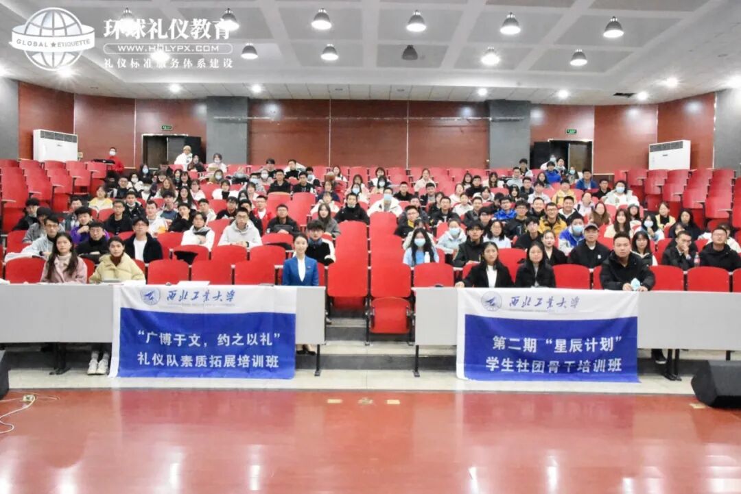 环球礼仪培训中心 2021年11月14日晚,西安环球礼仪培训中心受邀走进西北工业大学长安校区,为礼仪队和学生社团骨干进行了系统的《商务社交礼仪与活动接待礼仪》培训。